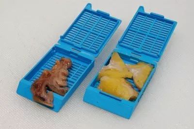 🙆 正確:不同類型的組織樣本使用合適的包埋盒進行脫水。組織碎片在脫水過程中容易皺縮,如果包埋盒過大的話,碎片會漏到脫水試劑中,甚至轉(zhuǎn)移到其他樣本中;