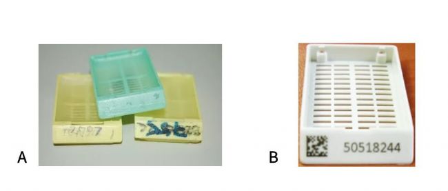🙆 正確:為了更準確地識別樣本,包埋盒必須進行清楚的標記;