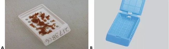 🙆 正確:新鮮或者固定不充分的樣本沒有包在泡沫活檢墊中,特別是空心針活檢(避免活檢墊的人工損傷);