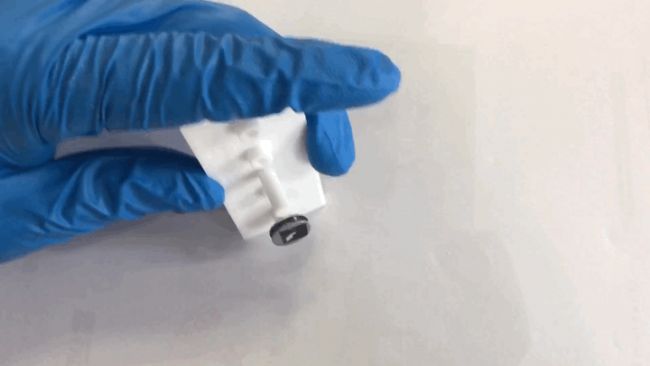 第五步 豎直持握壓縮氣罐,吹掃樣品;調(diào)整方向,繼續(xù)吹掃