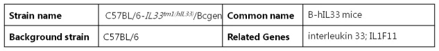 綜上,越來越多的研究證實IL33在哮喘的發(fā)病中發(fā)揮重要作用,在全基因組相關(guān)性研究中發(fā)現(xiàn),IL33及其受體基因是哮喘最敏感的基因,它可能是啟動和維持哮喘氣道炎癥的重要細胞因子,阻斷IL33與ST2的結(jié)合可能為哮喘治療提供新的途徑。百奧賽圖成功構(gòu)建了人源化IL33哮喘模型小鼠,可為相關(guān)研究提供有力工具。