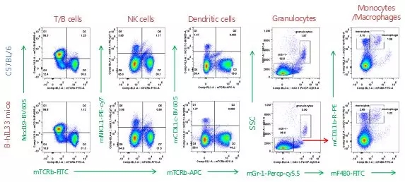 B-hIL33小鼠脾臟細胞亞群分析