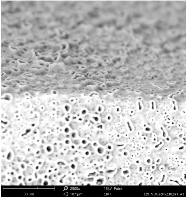 a. 酸刻蝕的鈦表面 b. 陽極氧化的鈦表面