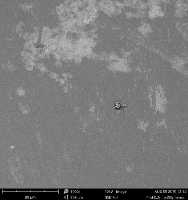 如圖 4,同一品牌的牙套,通過掃描電鏡,我們可以清楚看到新的產(chǎn)品表面干凈、光滑,使用一段時(shí)間后,表面存在孔洞、磨損等特征。