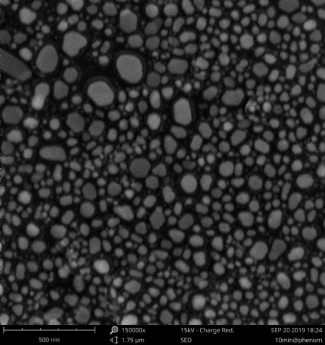 如下圖所示,在一個(gè)區(qū)域觀察一段時(shí)間后,樣品表面出現(xiàn)明顯的碳沉積,顆粒表面仿佛有層“薄膜”,影響樣品拍照效果。