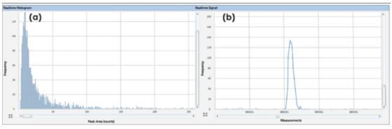 TMAH 中含鐵納米顆粒結(jié)果圖譜:(a)粒徑分布;(b)單個含鐵納米顆粒實時信號