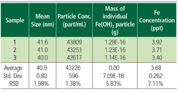 TMAH 中含鐵納米顆粒粒徑和濃度