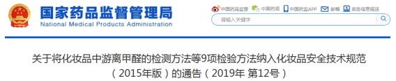 國(guó)家藥品監(jiān)督管理局新增的《化妝品中游離甲醛的檢測(cè)方法》(2015版)中對(duì)甲醛的含量標(biāo)準(zhǔn)及檢測(cè)做了詳細(xì)的指導(dǎo)與規(guī)定,自2020年1月1日起,化妝品注冊(cè)、備案及監(jiān)督檢驗(yàn)相關(guān)檢測(cè)均需按照發(fā)布的檢測(cè)方法進(jìn)行。