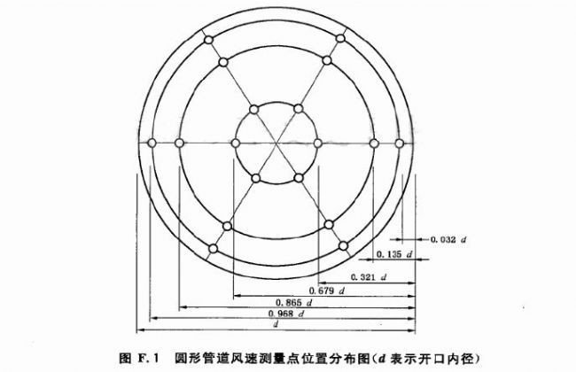 1) YY0569-2011中,測試步驟和方法指出,用風(fēng)速儀插入至附錄圖F.1中的測量點(diǎn)位置,然后算出安全柜的排氣流量。對口徑≤254mm的圓管,3個或2個軸,每個軸上有6個測點(diǎn);口徑>254mm的圓管,3個或2個軸,每個軸有8或10個測量點(diǎn)。再測得安全柜的供氣流量,最后算出進(jìn)氣流速。