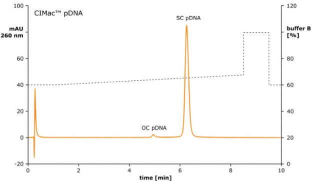 CIMac™pDNA 分析柱還用于超螺旋質(zhì)粒 DNA 含量的質(zhì)量控制。