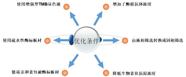一個(gè)穩(wěn)健的能用于雜交瘤和噬菌體展示篩選方法是ELISA各種耗材,試劑和實(shí)驗(yàn)條件的完美組合,需要對(duì)試劑耗材的多種可能進(jìn)行探索,也是平臺(tái)經(jīng)驗(yàn)的系統(tǒng)匯總,以下是用于篩選方法的優(yōu)化方向的匯總。