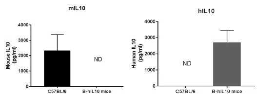 圖2. 野生型C57BL/6mice和純合B-hIL10 mice血清ELISA檢測(cè)