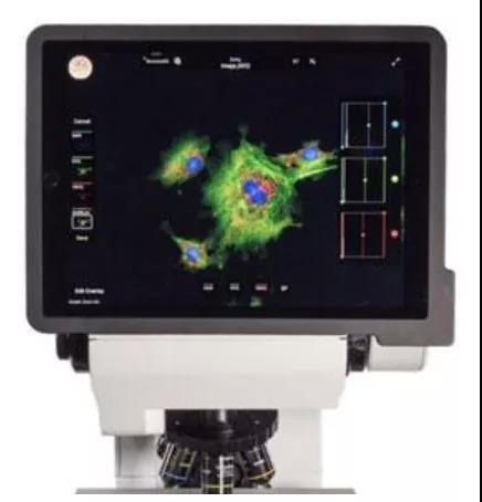這款正倒置一體顯微鏡,是由美國Discover ECHO公司自主研發(fā),它的出現徹底顛覆了顯微鏡領域的傳統(tǒng)設計思路,通過機體翻轉實現了正倒置配置的自由切換,一臺相當于四臺顯微鏡,節(jié)省了成本和空間,除此之外還具有明場,相差以及熒光成像的功能,具有雙光路,雙相機系統(tǒng)(12MP彩色高分辨率相機以及3.2MP單色高靈敏度相機),滿足實驗室絕大部分的需求,不僅如此,Echo使用iPad Pro代替了傳統(tǒng)的目鏡,超高分辨率的Retina視網膜觸屏設計配合全視野觀察,使得顯微鏡觀察更清晰,更方便。同時還有強大的圖片處理、分析功能,在拍攝的同時完成多通道圖片的自動merge: