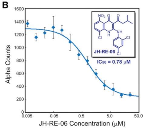 在整個(gè)實(shí)驗(yàn)過(guò)程中,采用ALPHA技術(shù)對(duì)初篩得到的化合物JH-RE-06的功能驗(yàn)證是非常重要的一步:
