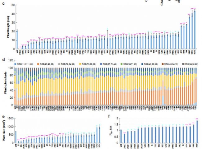 這一研究工作的關(guān)鍵點(diǎn)之一是對(duì)大量的樣品進(jìn)行定量化表型測(cè)量與分析,通過(guò)表型鑒定來(lái)確定研究的功能基因。如果使用傳統(tǒng)的表型測(cè)量技術(shù),工作量將是非常巨大的,而且數(shù)據(jù)結(jié)果中可能會(huì)有各種因素造成的大量誤差。而本研究中使用的PlantScreen高通量植物表型成像分析系統(tǒng)運(yùn)用最新的植物表型成像分析技術(shù)完美解決了這一問(wèn)題。