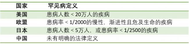 表1. 不同國家對于罕見病的定義[4]