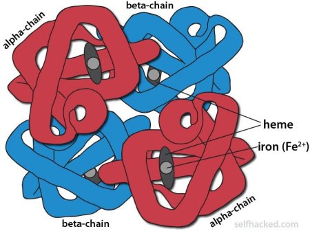 如下圖所示,人體正常血紅蛋白結(jié)構(gòu)有2條α-珠蛋白和2條β-珠蛋白分別攜帶一個血紅素后聚合形成血紅蛋白(hemoglobin,Hb)四聚體,承擔(dān)人體內(nèi)氧運輸任務(wù),當(dāng)α-珠蛋白與β-珠蛋白比例(正常比例為α:β=1)失衡,地貧發(fā)病。