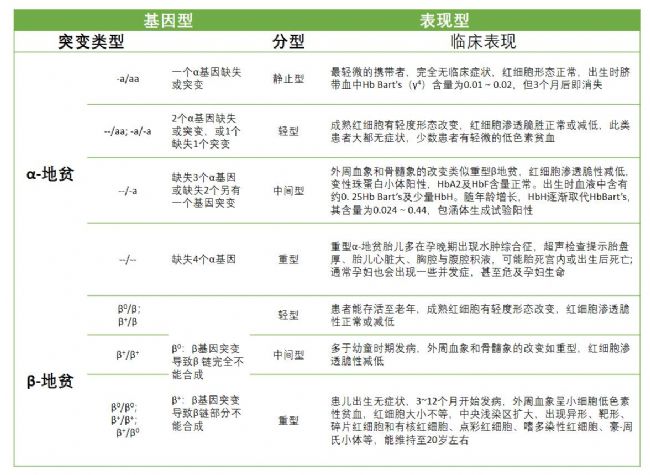 表2. 根據(jù)基因型對地貧進(jìn)行分類及其表現(xiàn)型[6]