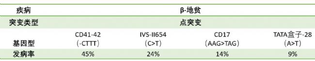 表4. β-地貧主要不同突變形式的占比[6]