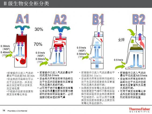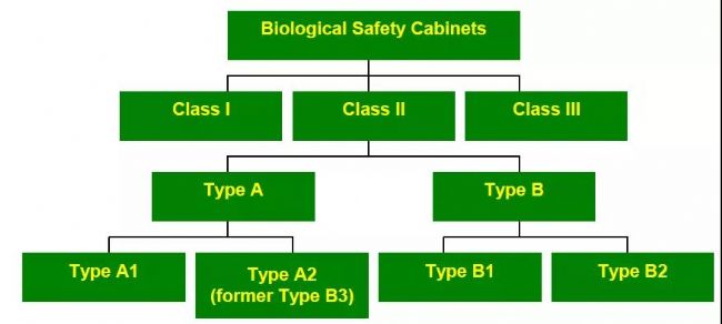 對于兩類生物安全柜的物理上的區(qū)分如下: