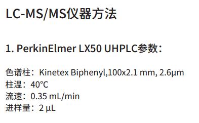 以下參數(shù)以PerkinElmer QSightTM 210 三重四極桿質譜