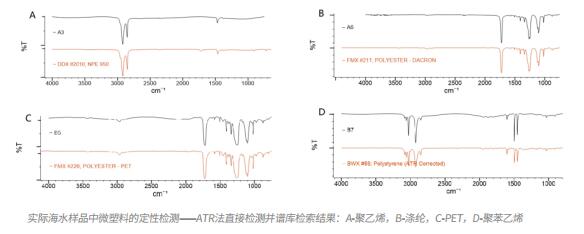 由實驗結(jié)果可見,利用ATR-紅外光譜法對大尺寸微塑料樣品進(jìn)行檢測,具有過程簡便、結(jié)果準(zhǔn)確、靈敏度高等優(yōu)勢。