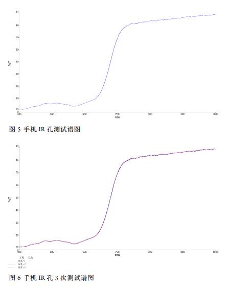 在手機(jī) IR 孔生產(chǎn)過(guò)程中,需要測(cè)試 IR 孔不同波長(zhǎng)的透過(guò)率便于質(zhì)控。一般選用 550nm、 850nm 和940nm 幾個(gè)測(cè)試波長(zhǎng)位置。歐美標(biāo)準(zhǔn)一般測(cè)試 550nm 和 850nm 兩個(gè)波長(zhǎng)的透過(guò)率,而日韓標(biāo)準(zhǔn)一般選用 550nm 和 940nm 兩個(gè)波長(zhǎng)的透過(guò)率。一般質(zhì)控要求手機(jī) IR 孔 850nm 處的透光率達(dá)到 80% 以上,550nm 處透過(guò)率低于 15%,這樣才能使手機(jī) IR 孔能感受到紅外線(xiàn)的變化,同時(shí)又不受可見(jiàn)光的干擾。
