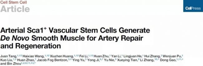 2019年12月26日,中國科學(xué)院生物化學(xué)與細(xì)胞生物學(xué)研究所周斌研究組、高棟研究組以及浙江大學(xué)張力研究組合作在 Cell Stem Cell 在線發(fā)表了題為 Arterial Sca1+ vascular stem cells generate de novo smooth muscle for artery repair and regeneration 的研究成果。