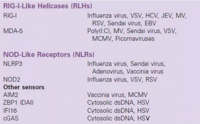 NOD樣受體(NLRs)和RIG-I樣解旋酶(RLHs)),以及黑色素瘤-2(AIM2)中缺失的傳感器分子。