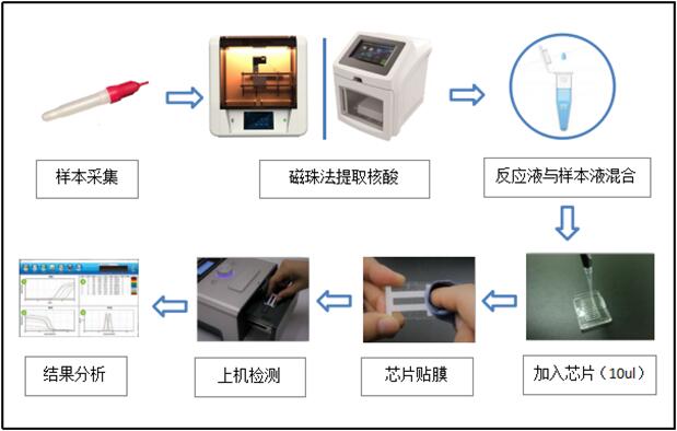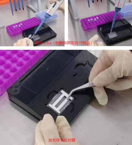 B.在PCR實驗室二區(qū)的生物安全柜內操作:在已加入檢測試劑的微流控芯片各孔中分別加入1.5ul的核酸樣本以及陽性對照、陰性對照,封膜后便可上機檢測。