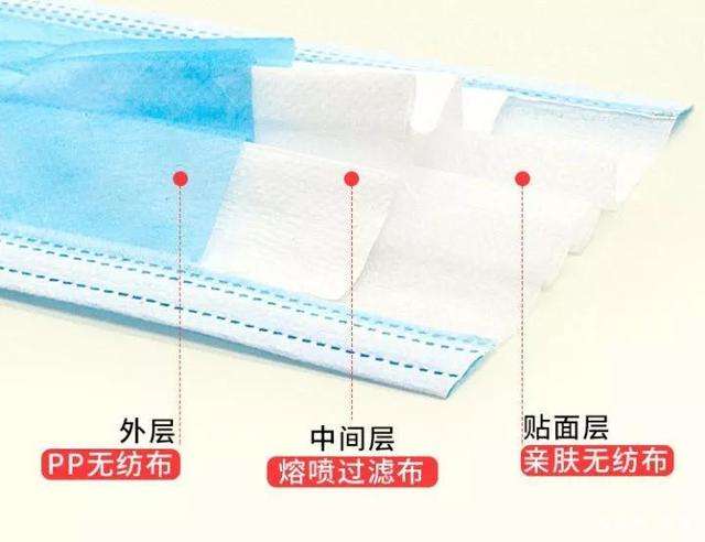 口罩的防護(hù)原理是什么呢?生產(chǎn)防護(hù)口罩的原材料主要有熔噴非織造布、紡粘非織造布,以及鼻梁條、綁帶等輔料。其主體結(jié)構(gòu)由表層抗?jié)駥、中間過濾吸附層及內(nèi)層貼膚層三部分組成,其中,中間過濾吸附層包含一層或多層帶有靜電的熔噴布,起到核心防護(hù)作用,表層抗?jié)駥蛹皟?nèi)層貼膚層多為紡粘布。熔噴布由超細(xì)纖維組成,直徑集中分布于1-5 μm之間,纖維間形成數(shù)量眾多的小孔徑通孔,使熔噴布具有一定的透氣性與過濾功能;紡粘布具有較高的強(qiáng)力,纖維直徑在15-40 μm。由于紡粘布的孔徑遠(yuǎn)大于熔噴布,因此幾乎不具過濾功能,但透氣性很好,在口罩中主要起到定型及保護(hù)熔噴布的作用。
