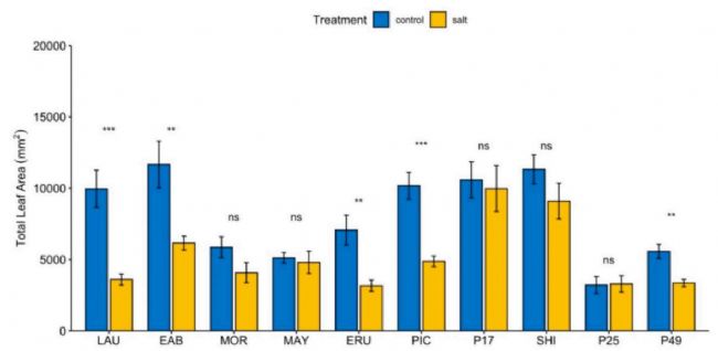 目前,全球農業(yè)都受到土壤和灌溉水鹽分升高的威脅。大約50%的灌溉農田都受到了鹽分的影響。2013年的經濟分析指出由于鹽分誘發(fā)的土壤退化和作物產量損失在全球造成了273億美元的損失。作為一種重要的蔬菜作物,萵苣(Lactuca sativa L.)在世界范圍內進行了廣泛的種植。萵苣產量最高的國家有美國、歐盟和中國。而萵苣對鹽分就是非常敏感的。鹽分脅迫會造成萵苣生物量減少、誘發(fā)葉燒病和早衰。