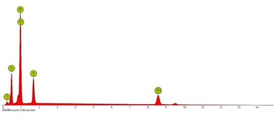 在 15kV 采集的 EDS 頻譜示例。峰值突出顯示元素的存在,并通過算法將來自探測(cè)器的信號(hào)轉(zhuǎn)換為化學(xué)成分。