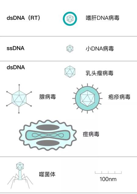從寄主類型分類:噬菌體(細菌病毒)、植物病毒(如煙草花葉病毒)、動物病毒(如禽流感病毒、天花病毒、HⅣ等)