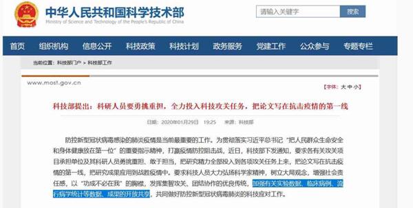日前,科技部也做出了明確指示:要求科技人員大力弘揚(yáng)科學(xué)家精神,樹立大局觀念,增強(qiáng)社會(huì)責(zé)任感,以“功成不必在我”的胸襟,發(fā)揮集智攻關(guān)、團(tuán)結(jié)協(xié)作的優(yōu)良傳統(tǒng),加強(qiáng)有關(guān)實(shí)驗(yàn)數(shù)據(jù)、臨床病例、流行病學(xué)統(tǒng)計(jì)等數(shù)據(jù)、成果的開放共享,共同做好防控新型冠狀病毒肺炎的科技應(yīng)對(duì)工作。