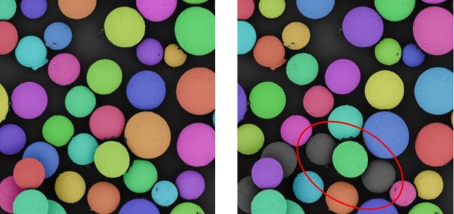 可以根據(jù)客戶不同檢測(cè)需求進(jìn)行統(tǒng)計(jì),比如融合顆粒的識(shí)別設(shè)置(圖1)、覆蓋顆粒是否統(tǒng)計(jì)(圖2)、不完整顆粒是否統(tǒng)計(jì)(圖3)、最小識(shí)別顆粒尺寸(圖4)等等。