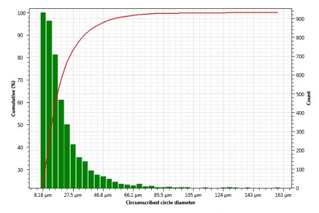 顆粒統(tǒng)計(jì)分析測(cè)量系統(tǒng)會(huì)把識(shí)別到的顆粒一一列出來,操作員可以根據(jù)需求可以刪除不滿意顆粒。其次,系統(tǒng)會(huì)把每一個(gè)顆粒的具體信息統(tǒng)計(jì)出來,比如面積、等效圓直徑、長(zhǎng)軸長(zhǎng)度、短軸長(zhǎng)度等,全面地了解樣品。
