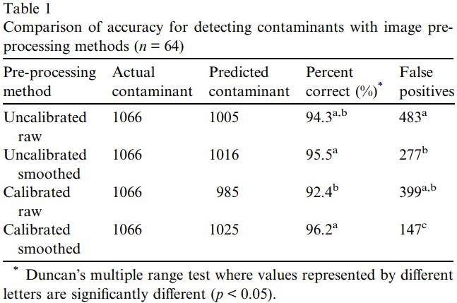 美國農(nóng)業(yè)部農(nóng)業(yè)研究服務(wù)部Richard B. Russell研究中心家禽加工研究組,使用Specim高光譜成像技術(shù),在64個被測家禽肉類的數(shù)千個污染物樣本評估中,對糞便污染物的預(yù)測準確度高達96.2%,同時最小化了誤報率。