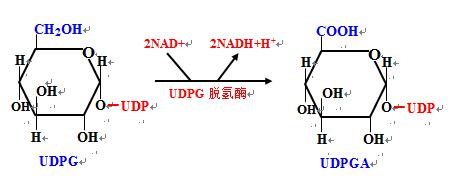 圖2α-D-UDP-葡糖醛酸和異源物的結(jié)合反應(yīng)