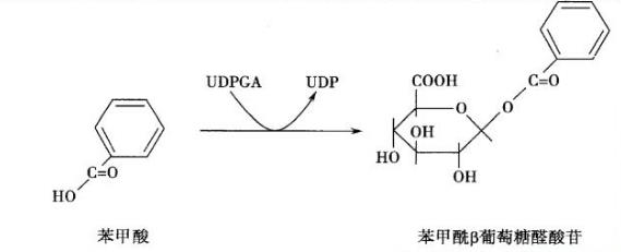 圖3 苯甲酸的葡萄糖醛酸結(jié)合反應(yīng)