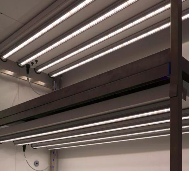 4、高性能LED燈:高性能LED燈的光照強度相對于一般白色管狀LED燈要更高。國際上高性能LED燈使用較多的是芬蘭的Valoya,專注于植物生物學研究,世界上最大的10家農業(yè)公司中有8家已經在使用Valoya的光源方案。不同的數量的Valoya LED燈組合方案可實現不同的光照強度,從300、600、800~1200µmoles/m²/s,甚至更高的光照強度。