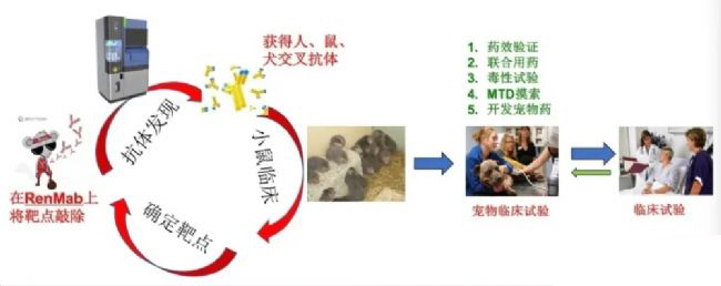 對于抗體藥物臨床前研究,可以采用反向工程的思維邏輯進行研發(fā)。比如,抓住“寵物腫瘤有效”這個牛鼻子,去指揮/要求前期藥物研發(fā),則會目的性更強,效率更高。從人、狗、再到鼠這樣往回看,如果不想浪費大量精力進行針對不同動物同一靶點的抗體開發(fā),就一定要求所篩選的抗體交叉識別鼠、狗(貓)、人靶點蛋白。當然,為了安評實驗,所篩選出來的抗體還要識別猴的靶點。而從靶點的角度看,通過在全人抗體小鼠上敲除靶點的方式,就可以制備“寵物腫瘤有效”這個牛鼻子所要求的交叉抗體,這種開發(fā)抗體的方式也省去了大量的蛋白工程過程。當多靶點并行的時候,就可以體現(xiàn)出規(guī);托实膬(yōu)勢。當然,從“寵物腫瘤有效”這個位置往人體臨床試驗方向看,如果一個抗體在寵物里有效,在人體臨床試驗中成功的可能性就會大增。