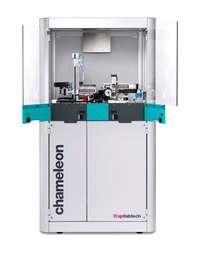 總體而言,冷凍電鏡的樣品制備技術(shù)的不成熟已經(jīng)成為限制冷凍電鏡技術(shù)發(fā)展的關(guān)鍵性因素。為了解決這個(gè)核心問(wèn)題,來(lái)自于英國(guó)SPT Labtech公司 (前身為TTP Labtech,其核心產(chǎn)品mosquito 在蛋白結(jié)晶篩選領(lǐng)域家喻戶曉) 最新研發(fā)了一款全自動(dòng)冷凍電鏡樣本制備系統(tǒng): 變色龍(chameleon),致力于解決目前樣本制備過(guò)程存在的上述種種問(wèn)題。(變色龍:新一代冷凍電鏡全自動(dòng)樣本制備系統(tǒng))