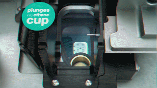 4. 快速plunge time:從噴點(diǎn)樣品至銅網(wǎng)上到置于液態(tài)乙烷進(jìn)行快速冷凍,最快僅需54 毫秒,避免較長(zhǎng)暴露在空氣中可能導(dǎo)致的樣品構(gòu)象排列的傾向性。
