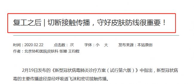 皮膚是人體的首道防線,進行合理的個人防護、做好皮膚清潔與消毒對于切斷接觸傳播至關重要。本次疫情之下,北京協(xié)和醫(yī)院皮膚科張姍王鈞程也撰文指出:復工后的個人防護清潔我們尤其需做到手部清潔防護。