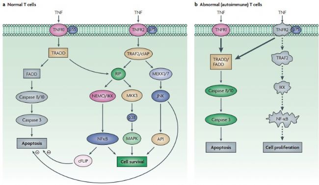 [1]Faustman D, Davis M. TNF receptor 2 pathway: drug target for autoimmune diseases. Nat Rev Drug Discov 2010, 9(6): 482-493.