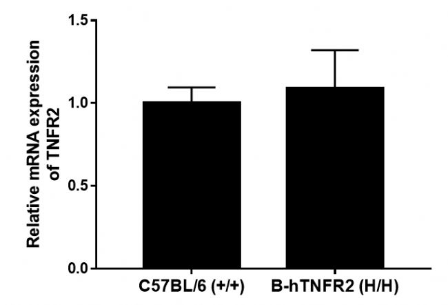 采用RT-qPCR對WT和B-hTNFR2小鼠的TNFR2基因表達進行品系特異性分析。