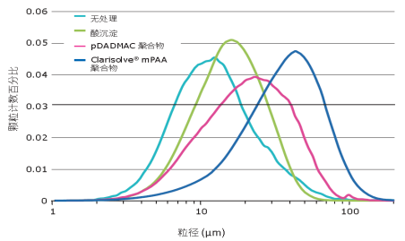 不同絮凝方式處理后粒徑變化: