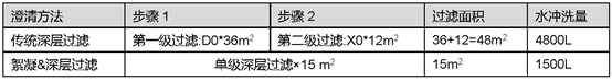 單級(jí)過(guò)濾即可有效降低濁度,減少深層過(guò)濾使用面積