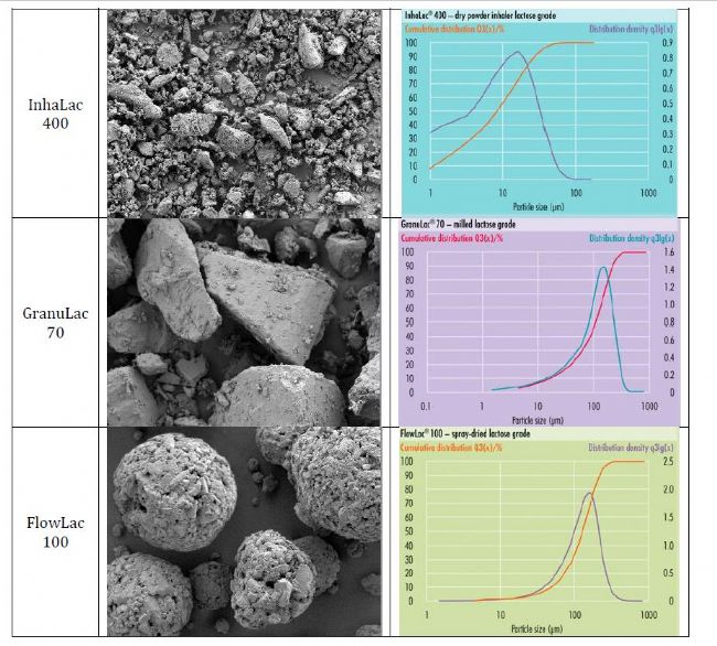 本應(yīng)用中選擇三種不同的粉體:FlowLac100、GranuLac70和InhaLac400。上述三種粉體均由Meggle Pharma提供。